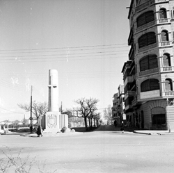 "Plaça de Ricard Viñes i començament de l’Avinguda de Prat de la Riba (General Mola); en primer terme s’hi veu el monòlit conegut com la Cruz de los Caídos\nRicard Vinyes"