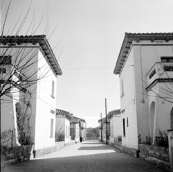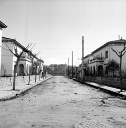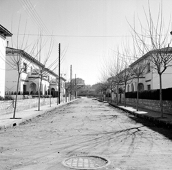 "Grup d’habitatges unifamiliars que en l’època es conegué amb el nom de Grupo 3 de abril ; Avinguda de Navarra, vista des de la carretera nacional núm. 240, actual Avinguda Alcalde Rovira Roure"