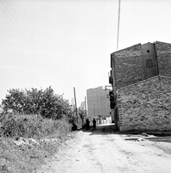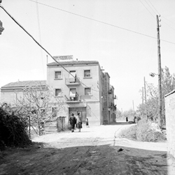 "Antic camí de Vallcalent i actualment carrer; el gran edifici que es veu al centre correspondria al xamfrà amb l’actual Carrer Magí Morera"