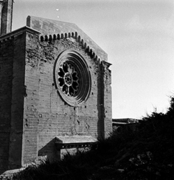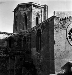 "Ala nord del creuer, cimbori i absis, vista exterior des del vessant del Turó de la Suda"
