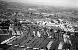 "Vista aèria dels voltants de la ciutat ; vertical aproximada del barri de Magraners; elements destacables en primer terme: cementiri i futur polígon industrial el Segre"