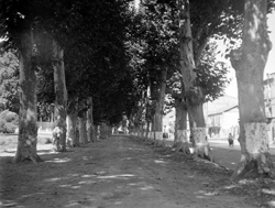 "Passeig lateral dels Camps Elisis, entre arbres, annex a l’antiga Carretera Nacional II (antiga Avenida de los Mártires, i actual Avinguda Josep Tarradellas, Antiga Carretera Nacional II"