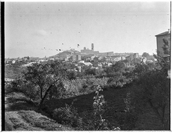 "Edificacions properes al Turó de Gardeny; possiblement al voltant del Carrer Acadèmia, o zona de la Mariola; al fons s'aprecia la Seu Vella"