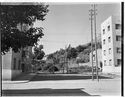 "Voltants dels Blocs Militars, al peu del Turó de Gardeny, entre l'Avinguda de Madrid i el Carrer Isaac Albéniz; al fons el Castell"