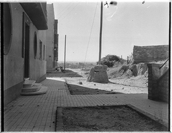 "Vessant del Turó de Gardeny, a tocar l'actual plaça Cots y Gayan, xamfrà amb l'Avinguda de Madrid; a l'esquerra els Blocs Militars"