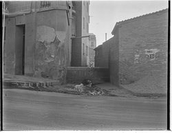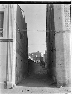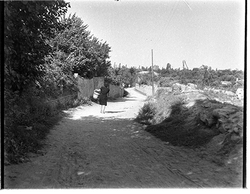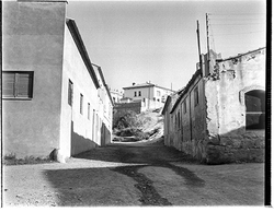"Pujada a la Serreta des del Carrer Lluís Companys (Víctor Pradera, del moment); edifici annex a l'Escorxador on hi havia el parc dels bombers"