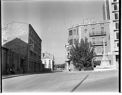 "Inici del Carrer Lluís Companys (Víctor Pradera, del moment), des de l'Avinguda de Catalunya, amb la Creu dels Tres Tombs"