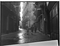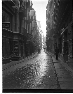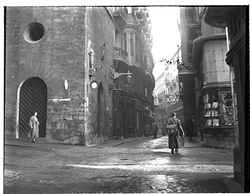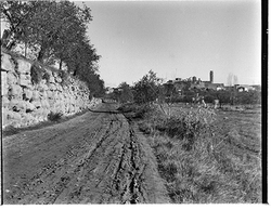 "Darrera del Santuari de Santa Teresita (Tereseta), possiblement l'actual Carrer Bisbe Irurita o carrers laterals; espona amb la Seu Vella al fons"