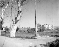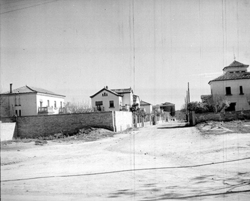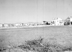 "Grup d’habitatges unifamiliars que en l’època es conegué amb el nom de Grupo 3 de abril ; zona de l’actual Passeig de Ronda; al fons es veu el carrer dels Pirineus"