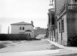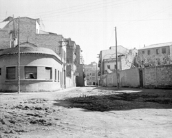 "Plaça de les Missions; inici del Carrer Magí Morera; en primer terme les escales del Santuari de Santa Teresita (Teresina) de Lleida"