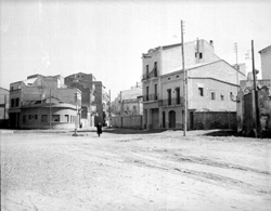 "Plaça de les Missions; al fons comencen els carrers Ciutat de Fraga i Bisbe Martín Ruano, esquerra"