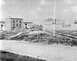 "Zona de Balàfia; expansió cap a la zona del Carrer de les Corts Catalanes; al fons els blocs Franco de Gaminde; en primer terme la urbanització del Carrer de la Garrotxa"