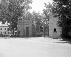 "Tanca de l’Hospital Provincial de Santa Maria; el camí de Montcada, vist des de la carretera nacional 240, actual Avinguda Alcalde Rovira Roure"