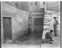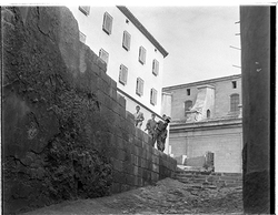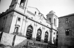 "Seu Nova de Lleida; façana de la Plaça de la Catedral; a la dreta l'edifici de l'Antic Hospital de Santa Maria, seu de l'Institut d'Estudis Ilerdencs"