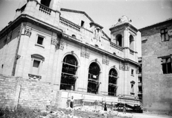 "Voltants de l'Institut de Batxillerat Màrius Torres; antic Instituto Nacional de Enseñanza Media ; blocs militars al xamfrà amb Cots y Gayan; carretera de Saragossa"