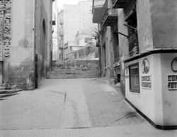 "Escales del Carrer Germanetes, al fons el Carrer de Sant Antoni\nComestibles"