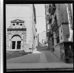 "Carrer de la Plateria des del Carrer de Sant Antoni; església de La Sang"