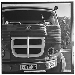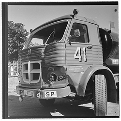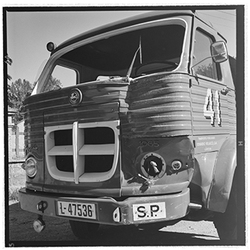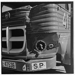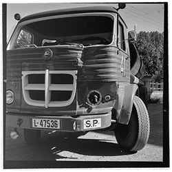 "Detall d’un camió de distribució de petrolis de CAMPSA accidentat, de la marca PEGASO amb matrícula L-47536, del concessionari Eduardo Velasco."