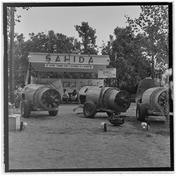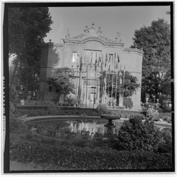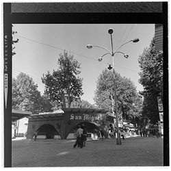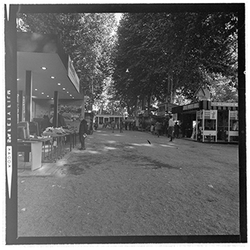 "Font de les Granotes durant la Fira de Sant Miquel. Al fons, vistes del xalet i jardins del Camps Elisis."