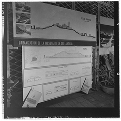"Plànol de la \"URBANIZACION DE LA MESETA DE LA SEO ANTIGUA\" , nova urbanització del Turó de la Seu vella, a l'estand de la Paeria de la Fira de Sant Miquel."