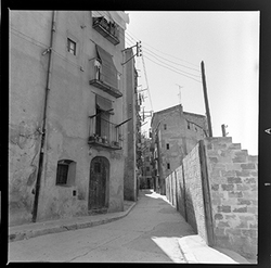 "Vista del Carrer del Roser; a la dreta comença el Carrer del Joglar Segalà"