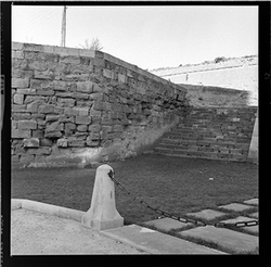 "Vista de la part posterior del Baluard de la Mitja Lluna, de les muralles del Turó de la Seu Vella"