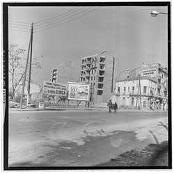 " Vista de l’Avinguda de les Garrigues des del que seria el xamfrà amb l’actual Rambla de Doctora Castells, amb aquesta en primer terme a l’esquerra. Al fons, també a l’esquerra, s’observa l’inici de l’Avinguda de València. En primer terme, es veu l’Avinguda de les Garrigues, antigament part de la Carretera Nacional II. Al fons destaca un rètol publicitari de VETERANO OSBORNE, element característic de l’època."