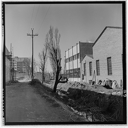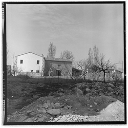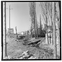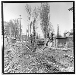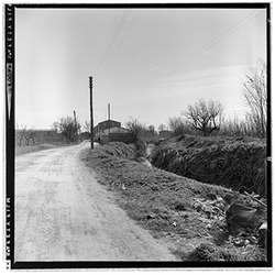 "Vista del recorregut de la Sèquia de Torres al seu pas pel Barri de Cappont. Possiblement es tracta del tram corresponent a l’actual Avinguda d’Alacant, a tocar de l’Avinguda de les Garrigues. La imatge destaca la presència d’aquesta infraestructura hidràulica en relació amb l’entorn urbà en transformació."