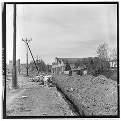 "Vista de les obres de canalització i cobriment de la Sèquia de Torres en el seu recorregut pel barri de Cappont, en el tram corresponent a l’actual Avinguda de València. Segurament, la zona es troba al voltant de l’actual Avinguda Jaume II i la Plaça Blas Infante, antic Camí Vell d’Albatàrrec."