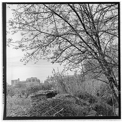 "Vista de les obres de canalització i cobriment de la Sèquia de Torres, en un sector que podria correspondre als voltants dels Camps Elisis. A l’esquerra de la imatge s’observa la caseta d’un transformador elèctric."