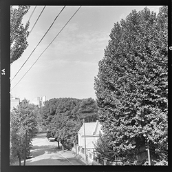 "Vista del carrer de Santa Cecília amb els jardins dels Camps Elisis a l'esquerra"