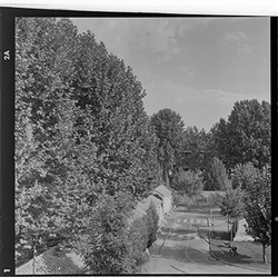 "Vista del Parc Infantil Ana Mari, situat als Camps Elisis, que inclou un circuit per a karts i pràctiques d’educació vial. La imatge està presa des del domicili particular de Lluís Terrés Pàmpols, al Carrer de Santa Cecília, amb aquest en primer terme."