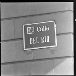 Detall d’una placa amb el nom del carrer: Calle Del Rio