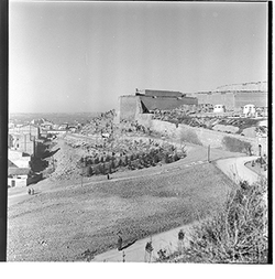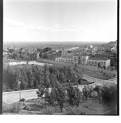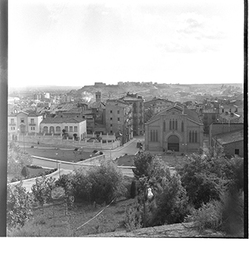 "Vista parcial des de la Seu Vella, al fons el mercat del Pla"