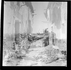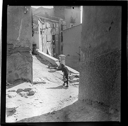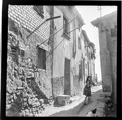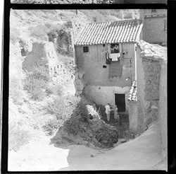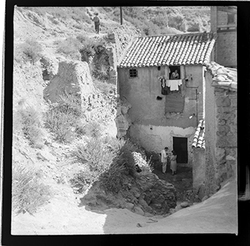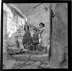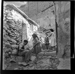 "Part alta del Canyeret; una dona i dues nenes, i un home treballant"