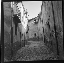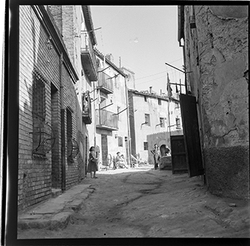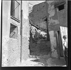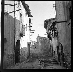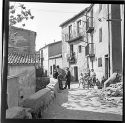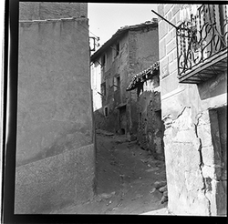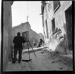 "Part alta del Canyeret; Carrer del Canyeret; un pintor realitza una obra"