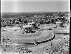 "Des de la Punta del Diamant, a les muralles els dipòsits d’aigua"