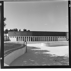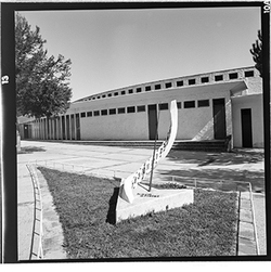 "Entrada recinte Les Basses d´Alpicat. Parque municipal Alcalde Pons , Les Basses; casetes - vestidors i rellotge de sol"