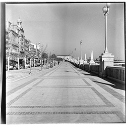 "Avinguda de Madrid; obres d’urbanització i construcció del mur des del marge esquerre del Riu Segre, a l’alçada del Col·legi Montserrat dels Germans Maristes; 1965"