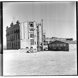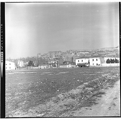 "Carrer Sant Joan de Mata i Camí Vell d'Albatàrrec; obres d’urbanització; al fons la Seu Vella; 1965"