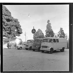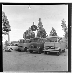 "Fira de Sant Miquel; 1968; estand de vehicles de l’empresa Eduardo Velasco S. A., concessionari oficial de la casa MERCEDES"