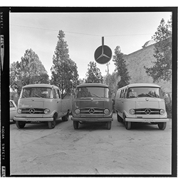 "Fira de Sant Miquel; 1968; estand de vehicles de l’empresa Eduardo Velasco S. A., concessionari oficial de la casa MERCEDES"