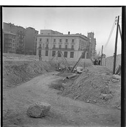 "Avinguda de Madrid; obres d’urbanització; excavació dels fonaments dels blocs de la futura Estació d’Autobusos de Lleida"