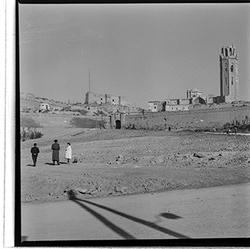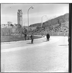 "Jardins d’accés a la Seu Vella; al fons conjunt monumental"