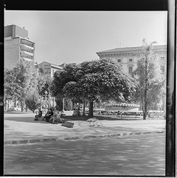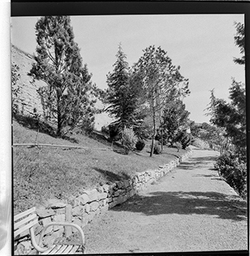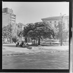 "Jardins de la Plaça de la Pau, annexa a l’edifici del Gobierno Civil (Govern Civil), al fons"