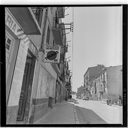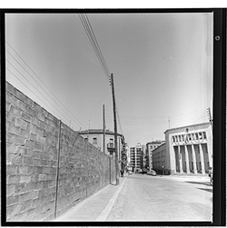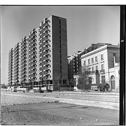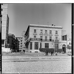 "Avinguda de Madrid; obres d’urbanització; vista posterior de l’edifici del Banco de España"