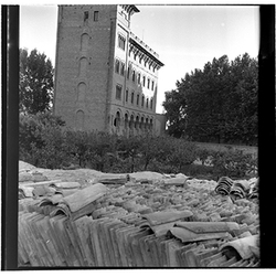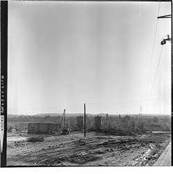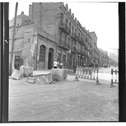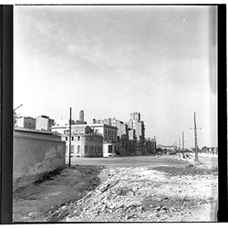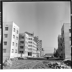 "Avinguda de Madrid xamfrà amb el carrer Cots y Gayan; blocs militars; obres d’urbanització; 1965"