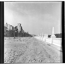 "Avinguda de Madrid; obres d’urbanització al xamfrà amb l’Avinguda de Catalunya; Col·legi Montserrat dels Germans Maristes. Guàrdia urbà o policia local"