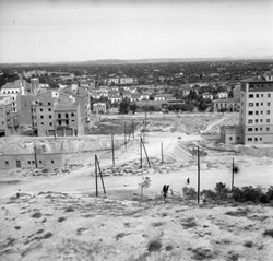 "El Camp de Mart; al fons l'edifici de Magisteri i la caserna de la Policía Nacional (Policía Armada)"
