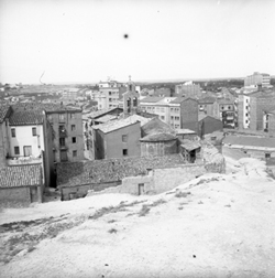 "Carrer de Monterrey des del turó de la Seu Vella; al fons l'església de Sant Martí"